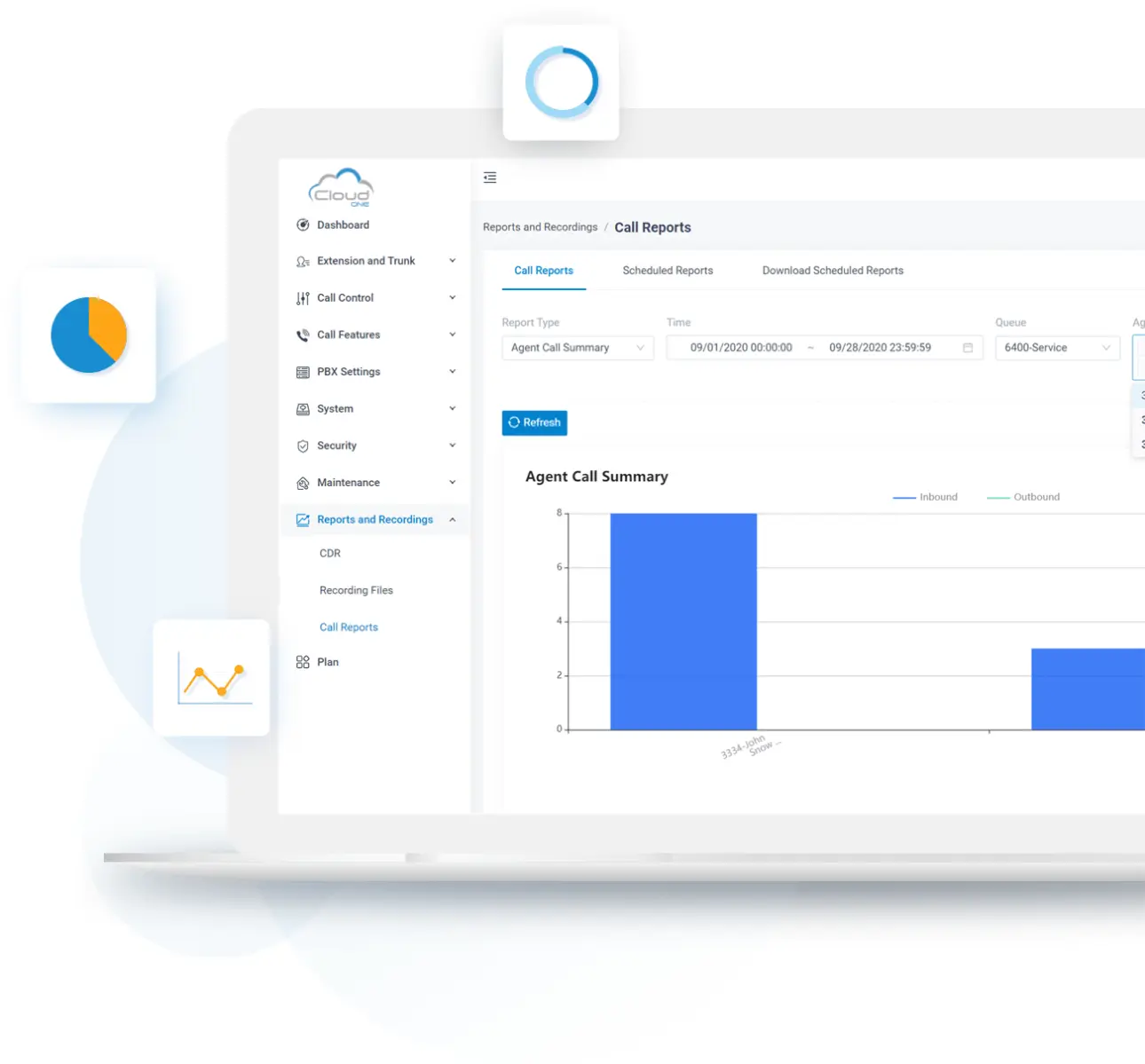 Get access to 8 advanced call center reports. Easily spot issues and opportunities in your call center with comprehensive view of agent-specific operational metrics, call parameters, and panoramic queue statistics.